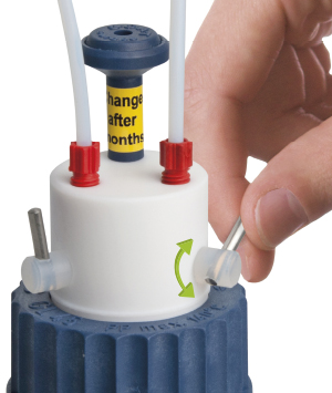 le filtre à air de vapeurs dangereuses font partie intégrante des blocs et nettoie l'air affluant de la poussière et de la saleté de particules.connecteurs pour tubes capillaires et divers.les communes de sécurité sont disponibles pour la plupart des bouteilles en verre (p. ex. fil taille gl45).ils peuvent être adaptés à d'autres tailles de contenants en utilisant des adaptateurs différents.particulièrement recommandé de solvants pour clhp: rester clean et composants de mélanges de solvants ne peut s'évaporer.une protection optimale contre les risques pour la santé causés par l'évaporation et scellage insuffisant.
